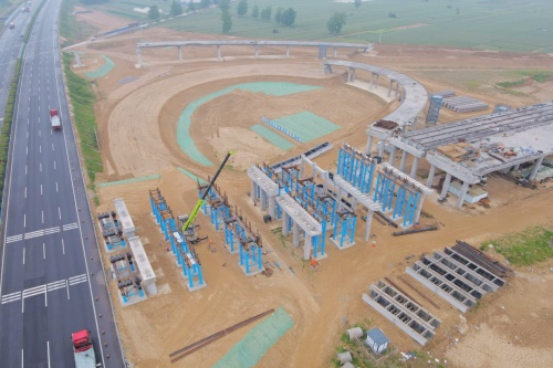 4月25日,由中鐵二局六公司承建的濮新高速寧沈段Ⅰ標(biāo)項(xiàng)目,邏崗樞紐互通K6+288主線橋(左右幅)鋼箱梁頂推段臨時(shí)支架安裝完成。
