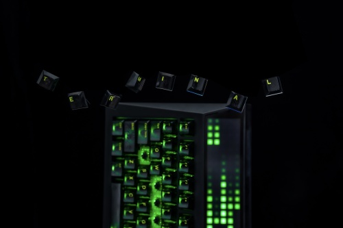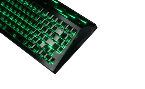 專用 PC 材質,黑底搭配綠色字符,同時結合 LED 矩陣和軸底燈的聯動燈效,讓 CYBERBOARD Terminal 充滿復古未來主義的黑客氣息。
